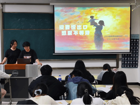 “同學(xué)們,猜一猜明天是什么節(jié)日?。俊薄澳赣H節(jié)!”5月11日,新聞傳播學(xué)類專業(yè)2023(7)、(8)班在K202教室開展以“愛要說出口,感恩不等待”為主題的團(tuán)建活動(dòng)。活動(dòng)開始前,活動(dòng)負(fù)責(zé)人、新聞傳播學(xué)類專業(yè)2023(7)、(8)班的班長楊雨霏、朱研溪提前為每位同學(xué)準(zhǔn)備好信紙和信封。朱研溪說:“我們希望通過寫信這種傳統(tǒng)而深情的溝通方式,讓同學(xué)們勇敢表達(dá)自己的心聲,將對(duì)母親的愛訴說于筆尖?!睂W(xué)生們觀看一段關(guān)于母愛的感人短片后,...